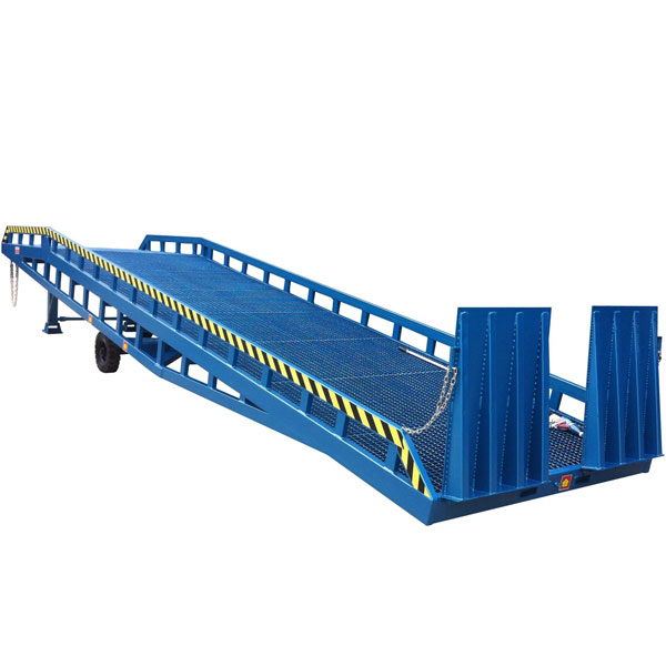 DCQY移動式液壓登車橋使用于裝卸作業不固定的場合,叉車可以直接通過它從地面駛入貨車上進行裝卸作業,該產品具有高強度的焊接鋼構,表面鋪設防滑鐵網,附設剎車墊防止貨物裝卸時登車橋移動,采用手動液壓泵升降,不需外接電源即可輕松實現登車橋高度的調節,可調節的掛鏈鉤可方便地與各種貨車緊密配合,使裝卸作業更安全、更快捷、更高效。