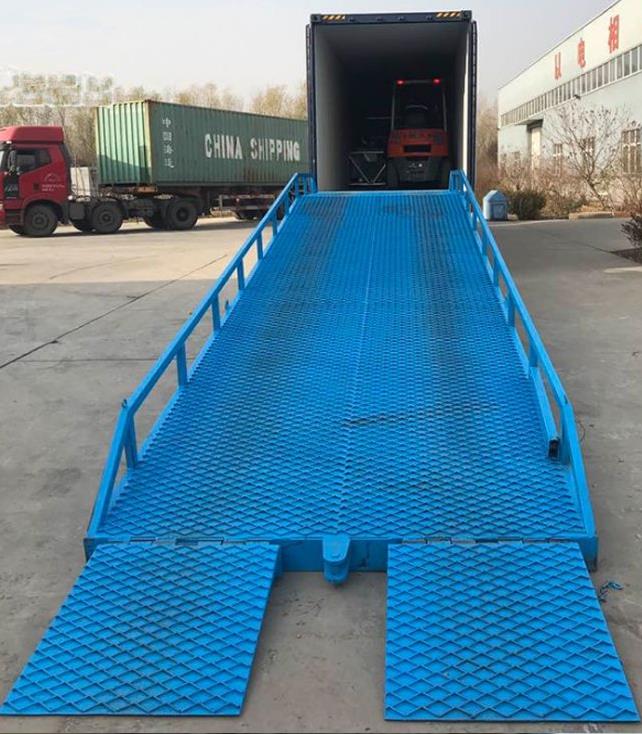萊蕪登車橋-爬坡過橋-移動登車橋-集裝箱叉車裝卸平臺-倉庫碼頭叉車用坡度平臺是與叉車配合使用的貨物裝卸輔助設備,可根據汽車車廂的高低調節高度,叉車可以直接通過本設備駛入車廂內部進行貨物的批量裝卸,僅需單人作業,即可實現貨物的快速裝卸。它使企業減少大量勞力,提高工作效率,獲取更大經濟效益。